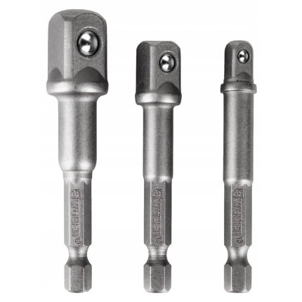 WUBER 1/4″ šešiakampiai redukciniai adapteriai. WUBER redukcinis rinkinys leidžia naudoti kvadratines galvutes, kurių dydžiai yra 1/4, 3/8 ir 1/2. Šiuos