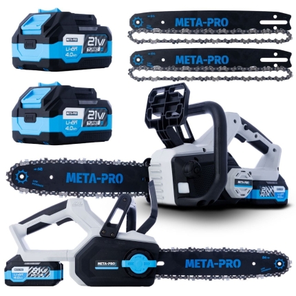 Galingas ir patogus META-PRO akumuliatorinis grandininis pjūklas, skirtas medienos pjovimui sode, kieme ar ūkyje. Dėl bešepetėlinio variklio (brushless) pjūklas pasižymi