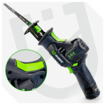 Galingas 12 V variklis generuoja reguliuojamą 0–2700 eigų/min. greitį, todėl efektyviai pjausto iki 80 mm storio medieną.