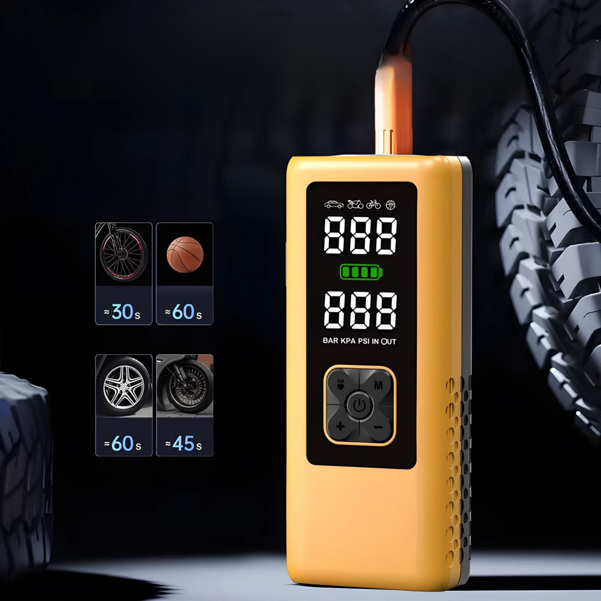 Kompresorius iki 145 PSI – automobilių padangoms, dviračių padangoms, kamuoliams ir kt.