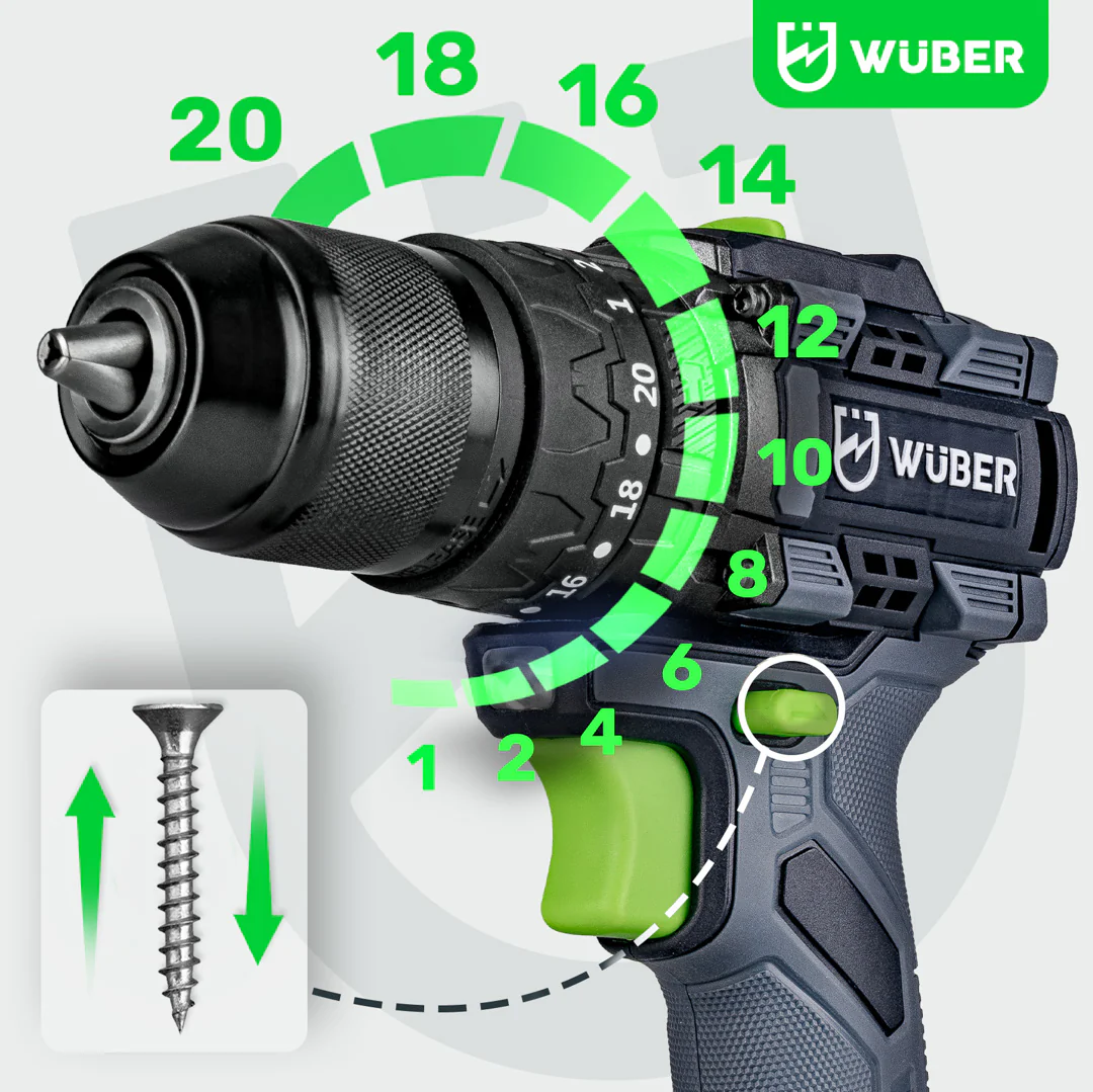 „Wuber“ 20 V smūginis akumuliatorinis gręžtuvas