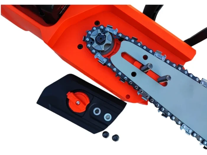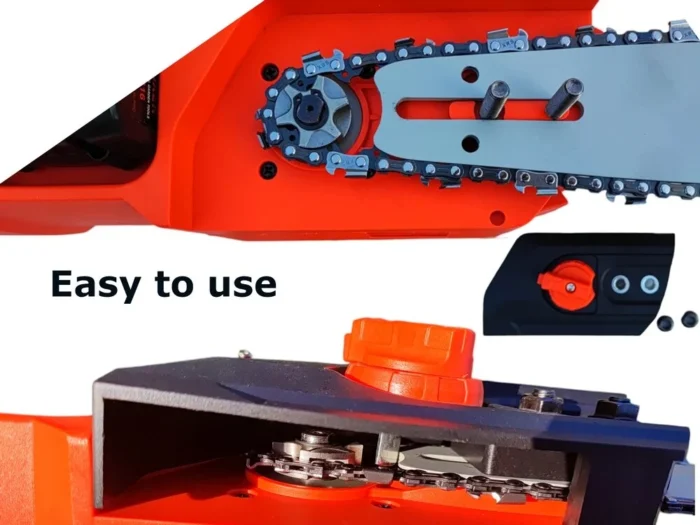 - Lengva grandinės įtempimo sistema (uždėkite grandinę ir pasukite ratuką)