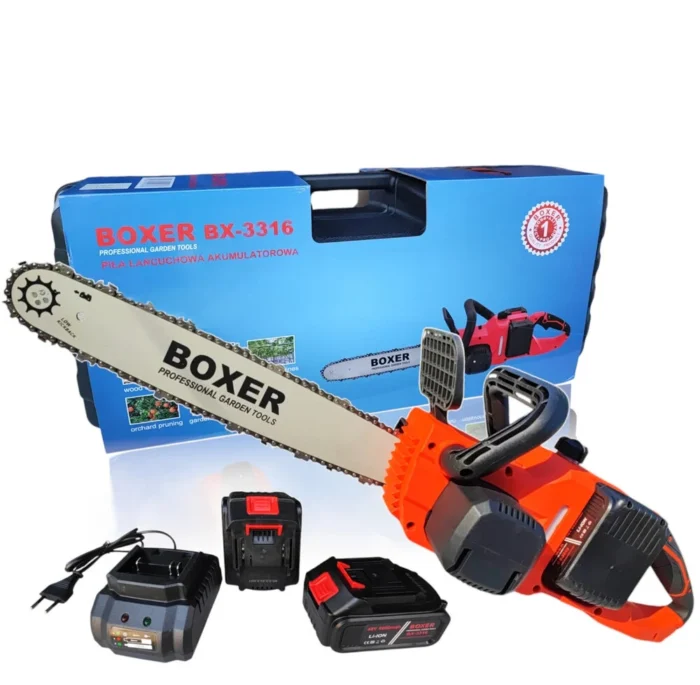 Akumuliatorinis grandininis pjūklas BOXER BX-3310 yra patikimas įrankis, puikiai tinkantis darbams sode ir aplink namus. Su dviem galingais 48V akumuliatoriais jis užtikrina aukštą našumą. Automatinė grandinės tepimo sistema ir ilga pridedama pjovimo juosta palengvina šakų ir medienos iki 15 cm skersmens pjovimą. Automatinis tepimas užtikrina sklandų darbą ir prailgina įrankio tarnavimo laiką.
