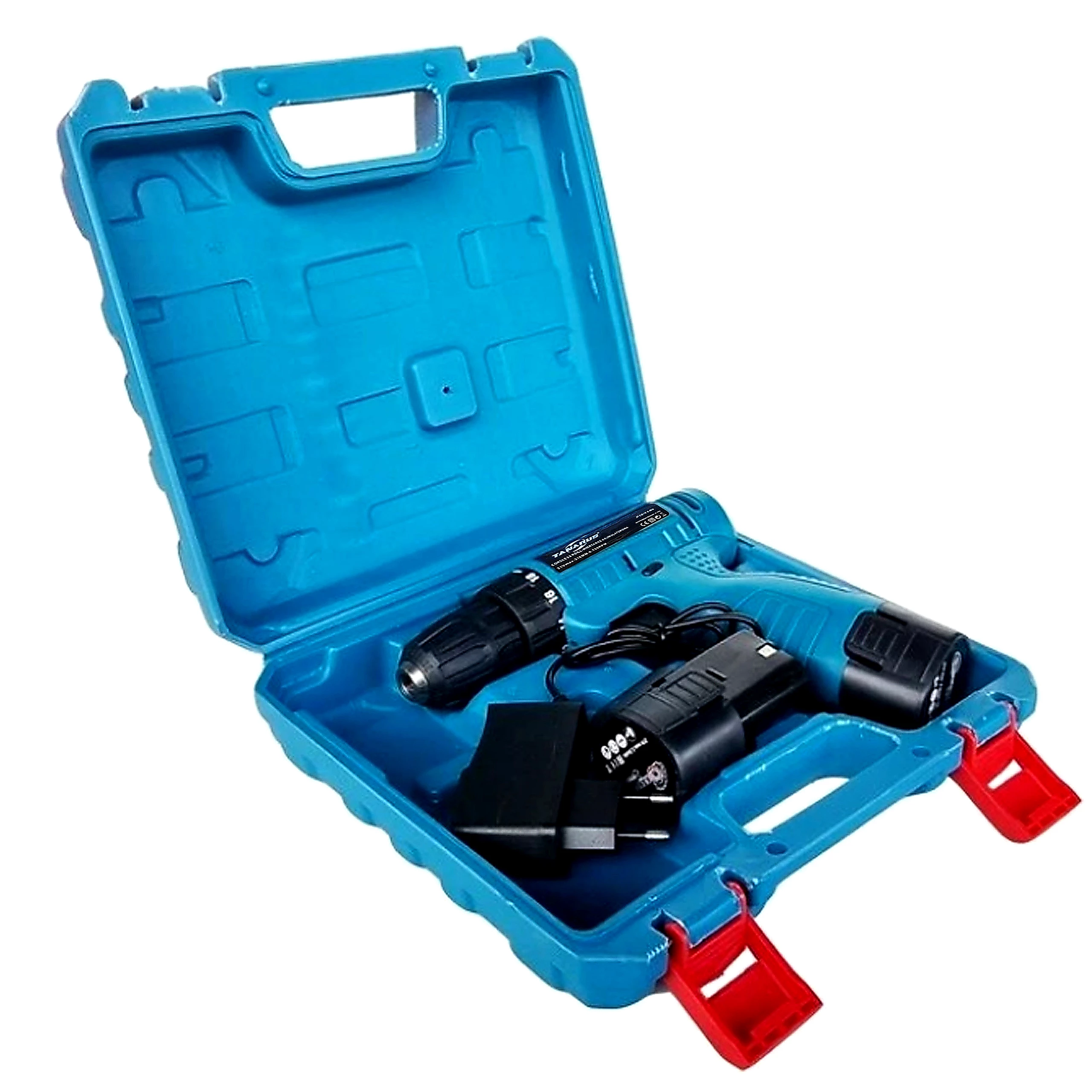 Akumuliatorinis gręžtuvas-suktuvas, dėklas, 2 x baterijos 30.00€
