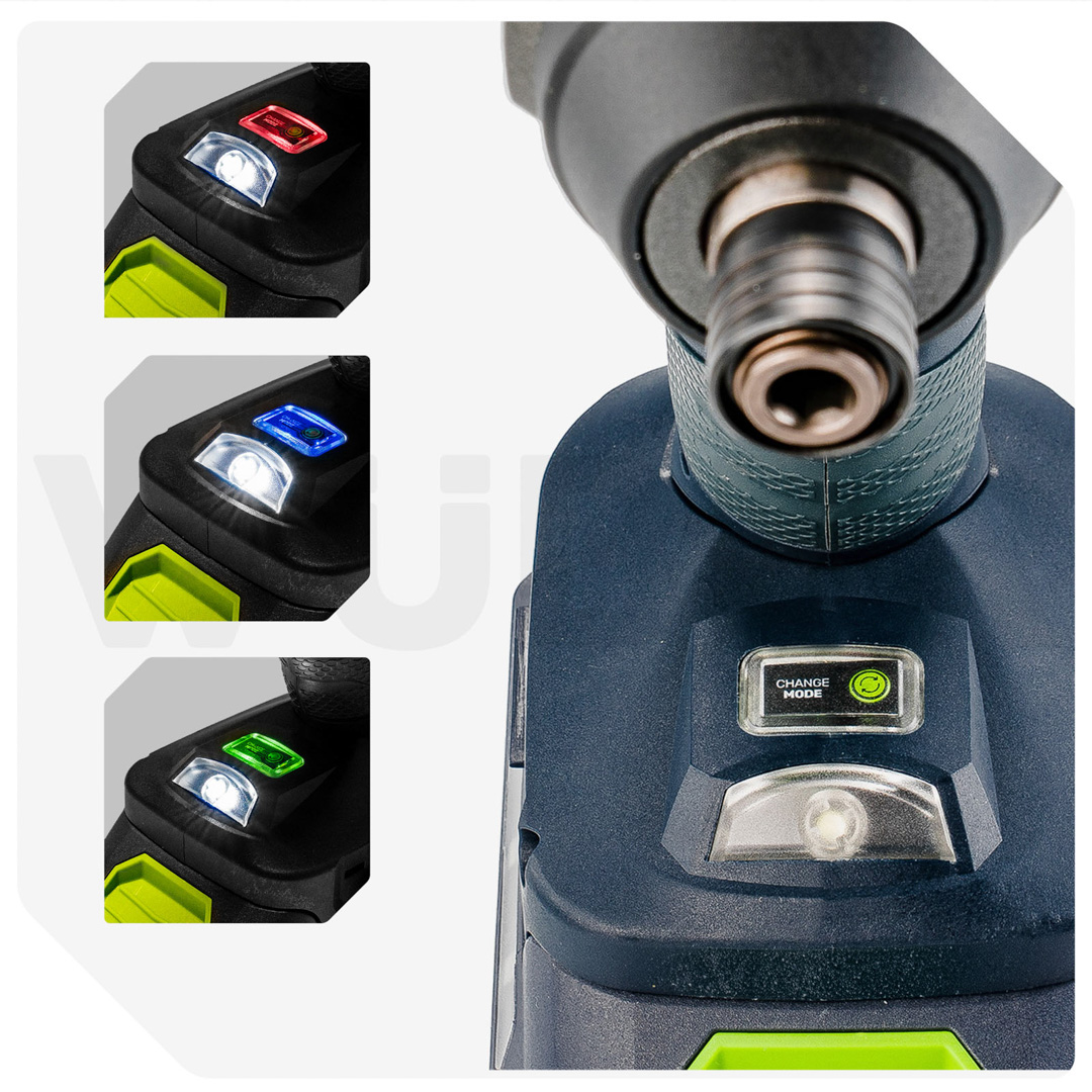 Aiškus valdymo skydelis su greičio reguliatoriumi užtikrina visišką kontrolę ir sklandų paleidimą, o „Sharp Stop“ funkcija apsaugo sriegius ir neleidžia pamesti veržlėms.
