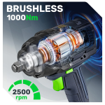 Efektyvus 20 V bešepetis variklis generuoja maksimalų 1000 Nm sukimo momentą, užtikrindamas efektyvų užstrigusių ir sunkiai įveikiamų jungčių atlaisvinimą.