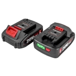 Komplekte yra dvi 2.0 Ah baterijos, įkroviklis bei priedai.