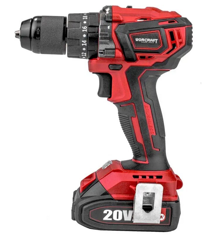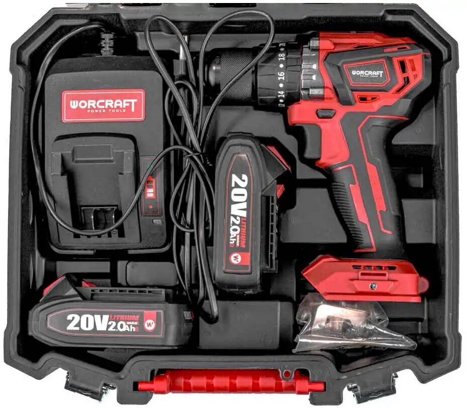 Pradžia Įrankiai ir technika Komplektai Akumuliatorinis suktuvas Worcraft CHD-S20LiBAT su priedais