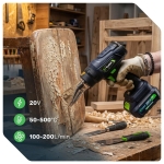 Šis galingas 20 V karšto oro fenas iš SHARE+SYSTEM serijos siūlo sklandų temperatūros reguliavimą nuo 50 °C iki 500 °C ir oro srautą nuo 100 iki 200 l/min.