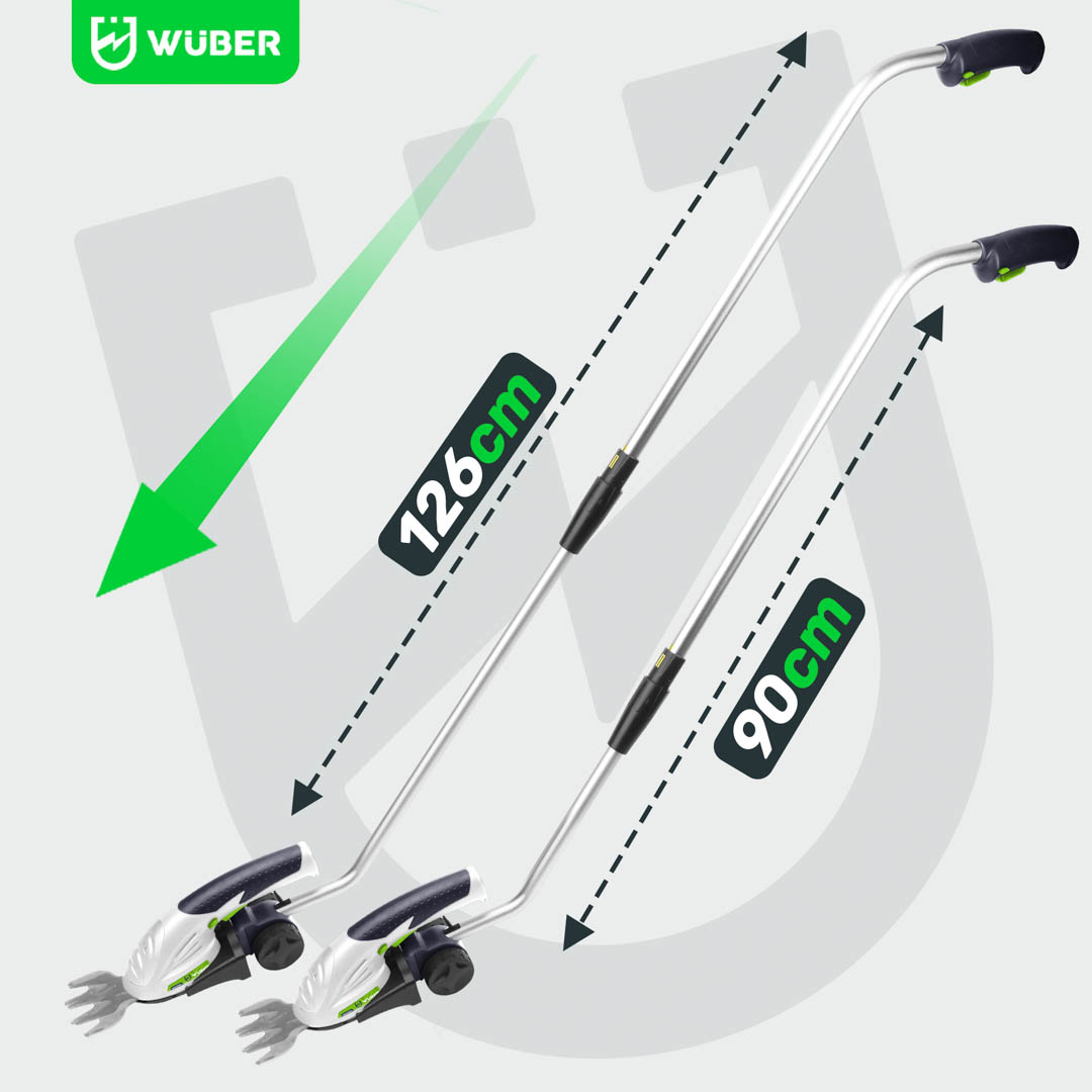Didžiausias prailginimo ilgis yra 126 cm, todėl galite lengvai apkarpyti aukštas gyvatvores arba pasiekti sunkiai pasiekiamas vejos vietas.