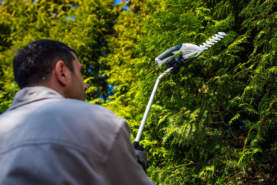 Teleskopinis prailginimo kotas leidžia lengvai pasiekti aukštas gyvatvores ir sunkiai pasiekiamas vietas.