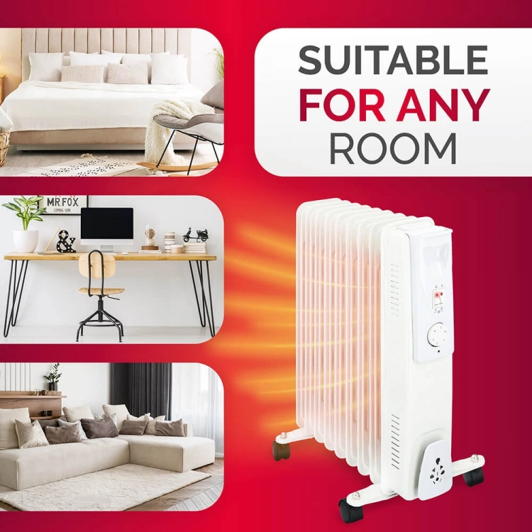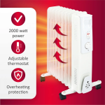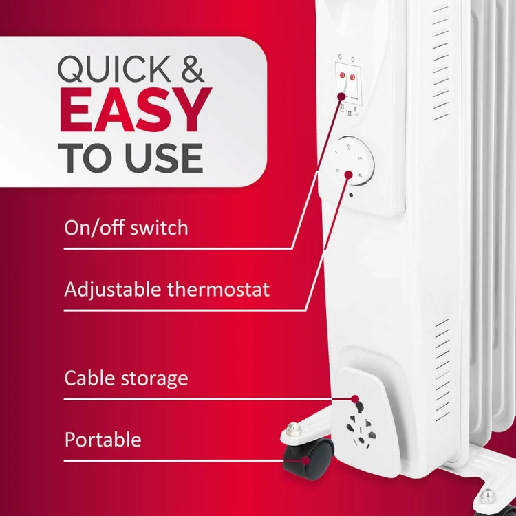 Puikiai tinka, kai miegamajame, vasarnamyje, palapinėje su nameliu ant ratų ir pan. reikia papildomo šildymo. Šis kompaktiškas ir alyva užpildytas elementas turi reguliuojamą termostatą, apšviestus jungiklius ir stabilias kojeles su ratukais. Nešimo rankena ir ratukai leidžia elementą lengvai perkelti ir laikyti.