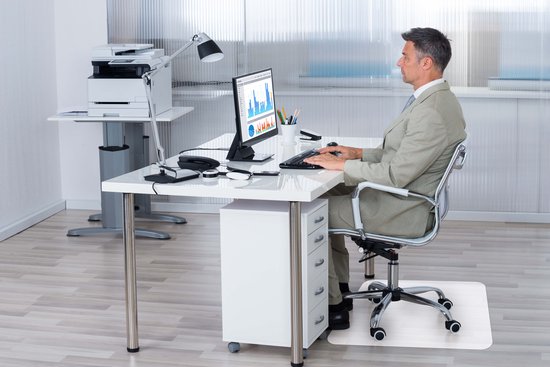 Apsaugokite savo grindis nuo nusidėvėjimo ir purvo su šiuo permatomu „Alpina“ kėdės kilimėliu. Ar dėl kiliminės dangos sunku apsiversti ant jūsų stalo kėdės? Su biuro kėdės kilimėliu tai jau praeitis. Grindų apsaugos dydis yra maždaug 90 x 90 cm ir dėl savo skaidrumo vos pastebimas. Medžiaga yra tvirta ir patvari, ją lengva valyti su trupučiu valymo skysčio ir drėgnu skudurėliu. „