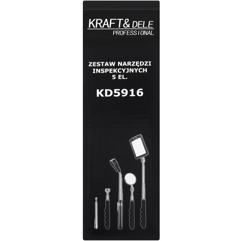 KD5916 yra praktiškas KRAFT&DELE patikros įrankių rinkinys, kuris žymiai supaprastina diagnostiką ir remonto darbus automobilių dirbtuvėse ir namų garaže. Rinkinys skirtas pasiekti sunkiai pasiekiamas vietas, kur standartinių įrankių nepakanka.