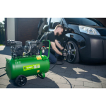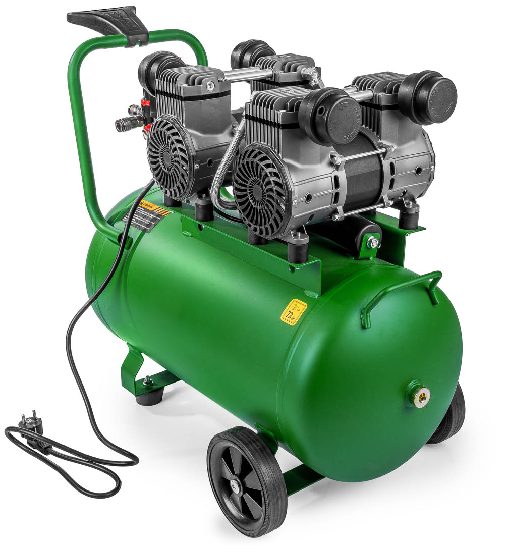 50 litrų talpos bako pakanka intensyvioms buitinėms ar pusiau profesionalioms užduotims, nes kompresoriaus papildymo dažnumas sumažėja.