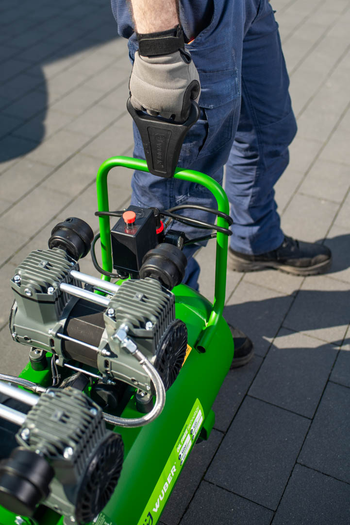 Kompresorius pagamintas iš aukštos kokybės medžiagų, o kartu su tiksliais suvirinimo siūlėmis sudaro patvarią ir atsparią pažeidimams visumą.