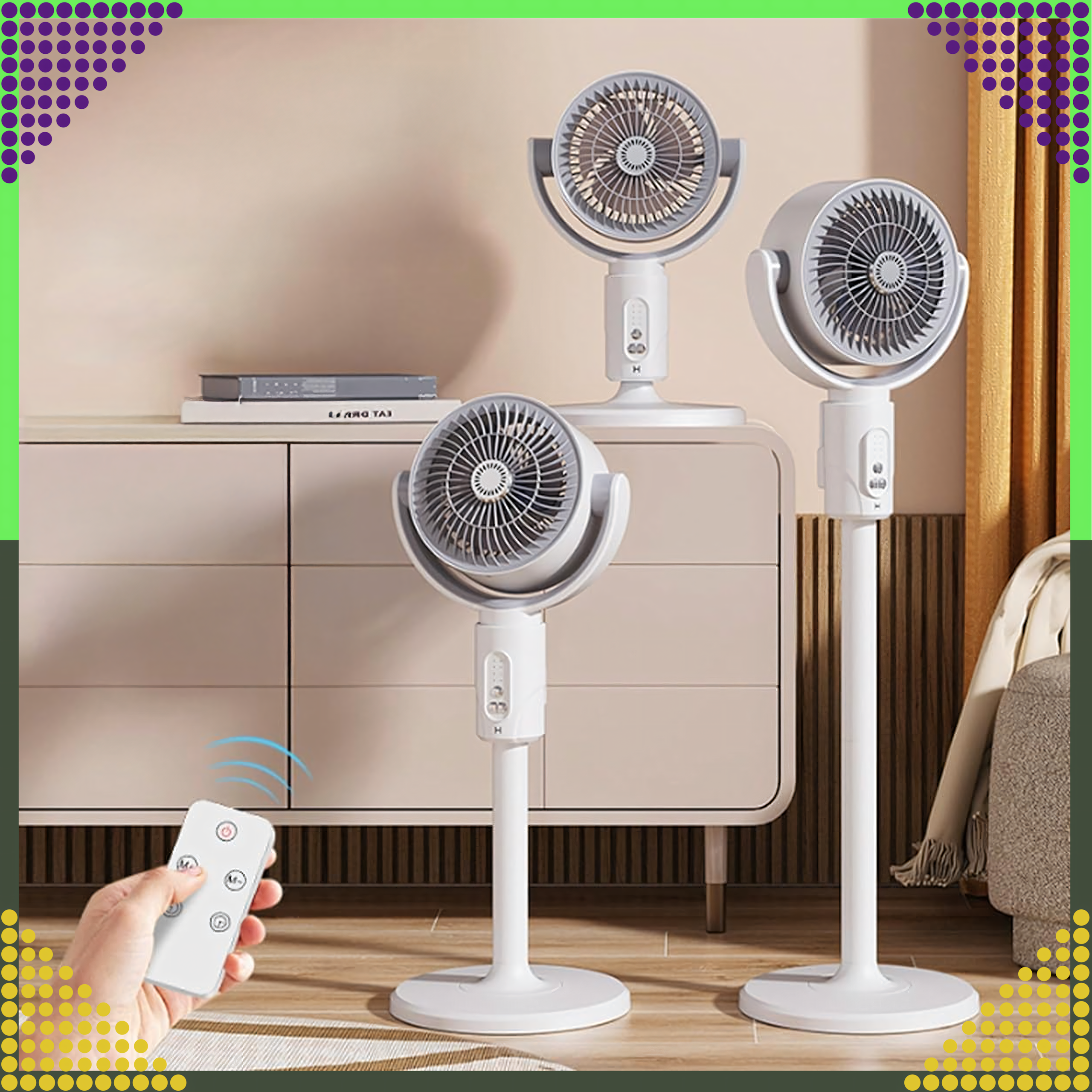 📏 Reguliuojamo aukščio 3 viename – 38 cm / 60 cm / 82 cm – stalo, grindų arba terasos ventiliatorius.