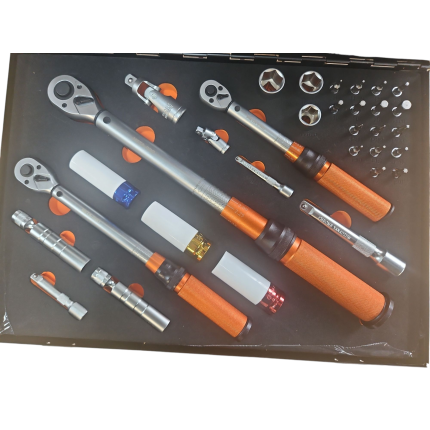 Dianmometrinių raktų komplektas 32 dalių Komplektacijoi trys terkšlės 1/2  10-60Nm, 3/8  10-60Nm, 1/4  5-25Nm.