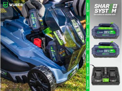 Dar vienas įrenginys, prisijungiantis prie „Share + System“ linijos, yra akumuliatorinė bešepetėlinė vejapjovė, turinti dvi 6,0 Ah talpos ir 20 V įtampos baterijas.