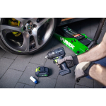 Kitas įrenginys, prisijungiantis prie „Share + System“ linijos, yra smūginis veržliasukis, turintis dvi 4,0 Ah, 20 V baterijas.