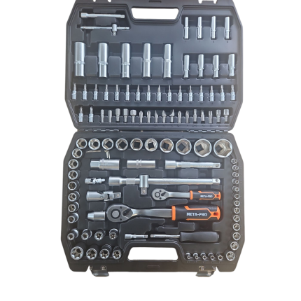 Galvučių rinkinys META-PRO pagamintas iš aukštos kokybės. Rinkinyje rasite dvi terkšlės 1/2; 1/4. Galvutės nuo 4 mm iki 32 mm,