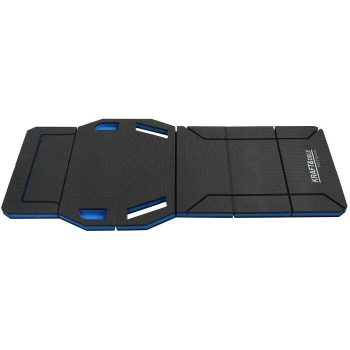 KD11942 dirbtuvių kilimėlis, kurio matmenys 1210x570x31 mm, yra puikus sprendimas bet kuriam profesionalui ar „pasidaryk pats“ entuziastui, kuris ilgas valandas praleidžia klūpėdamas ar gulėdamas. Aukštos kokybės plastikas puikiai izoliuojasi nuo šaltų, kietų paviršių ir apsaugo kelius, nugarą bei sąnarius nuo traumų ir įtampos. Kilimėlis yra lengvas, atsparus alyvai ir lengvai valomas – idealiai tinka automobilių dirbtuvėms, garažams, montavimo ir statybos darbams.