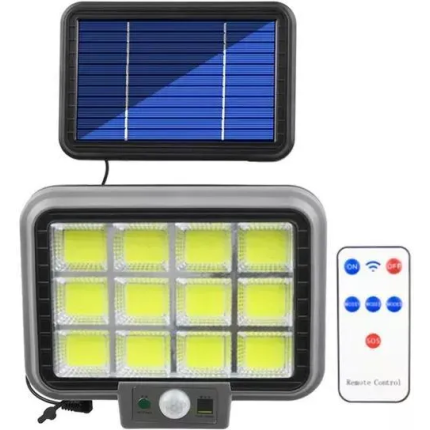 Saulės energija varomas sieninis šviestuvas HS-8022 12COB nuotolinio valdymo pultas, judesio ir prieblandos jutiklis