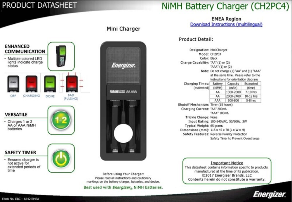 „Energizer Mini“ įkroviklis yra idealus sprendimas, kai dažnai keliaujate ir nereikia vienu metu įkrauti kelių įkraunamų baterijų. Jis turi spalvą keičiantį foninį apšvietimą, kad naudotojas iš karto žinotų, kuriame įkrovimo etape baterijos kraunamos.
