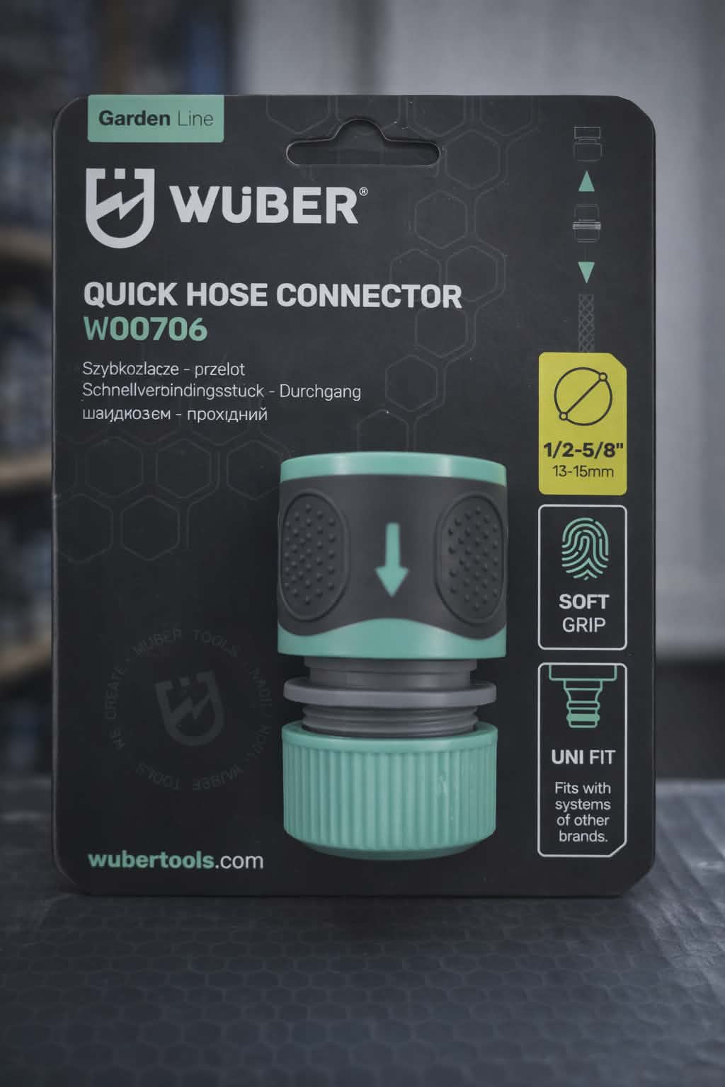 Greito jungimo žarnos jungtis WUBER W00706 – patogus ir patikimas sprendimas greitam laistymo sistemos prijungimui. Tinka 1/2″–5/8″ (13–15 mm) žarnoms, užtikrina sandarų sujungimą ir lengvą naudojimą. Minkšta „soft grip“ danga leidžia patogiai sujungti net šlapiomis rankomis, o universalus „UNI FIT“ dizainas suderinamas su dauguma laistymo sistemų.