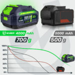 20 V 6,0 Ah talpa ir įtampa užtikrina ilgalaikį veikimą.