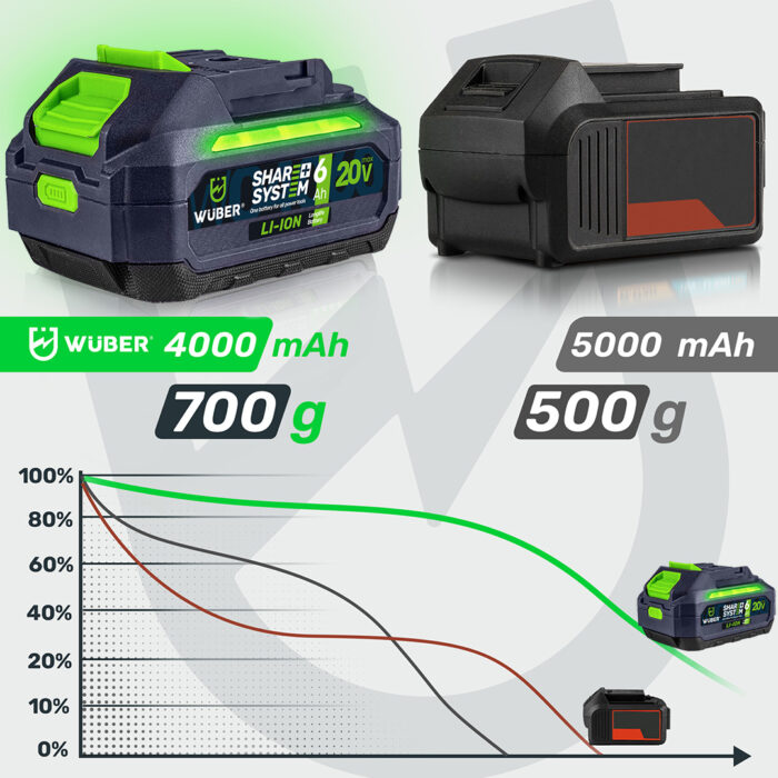 „Share+ System“ ličio jonų 20 V 6,0 Ah WUBER akumuliatorius.