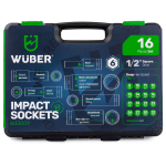 Ilgų smūginių galvučių rinkinys, 16 vnt. 1/2″ 6 kampų Wuber.