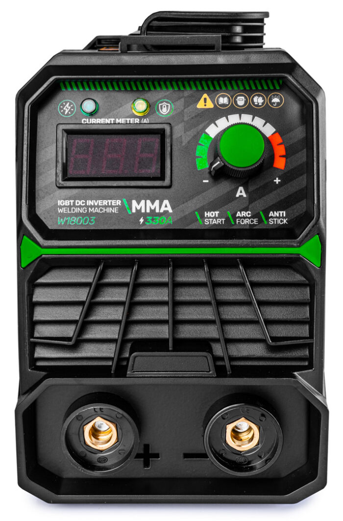 Suvirinimo srovės diapazonas nuo 20 A iki 330 A leidžia tiksliai reguliuoti parametrus pagal medžiagos storį ir suvirinimo tipą.