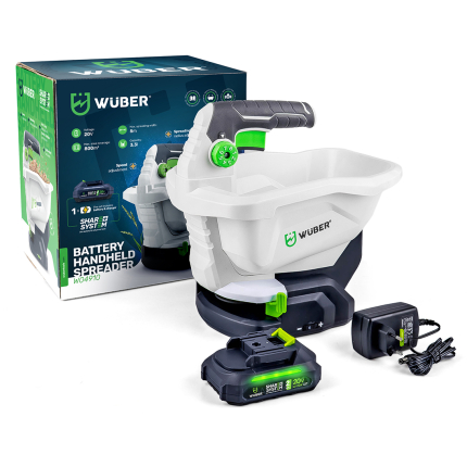 WUBER 3,3 l akumuliatorinis rankinis barstytuvas. 20 V baterija užtikrina visišką mobilumą ir belaidžio veikimo patogumą. 6 pakopų barstymo greičio