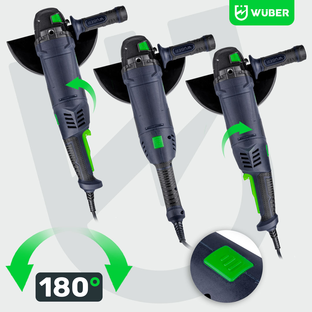 Sukurtas 230 mm diskams, šlifuoklis idealiai tinka sudėtingesnėms užduotims atlikti. Reguliuojama disko apsauga prisitaiko prie įvairių užduočių, tokių kaip pjovimas ar šlifavimas.
