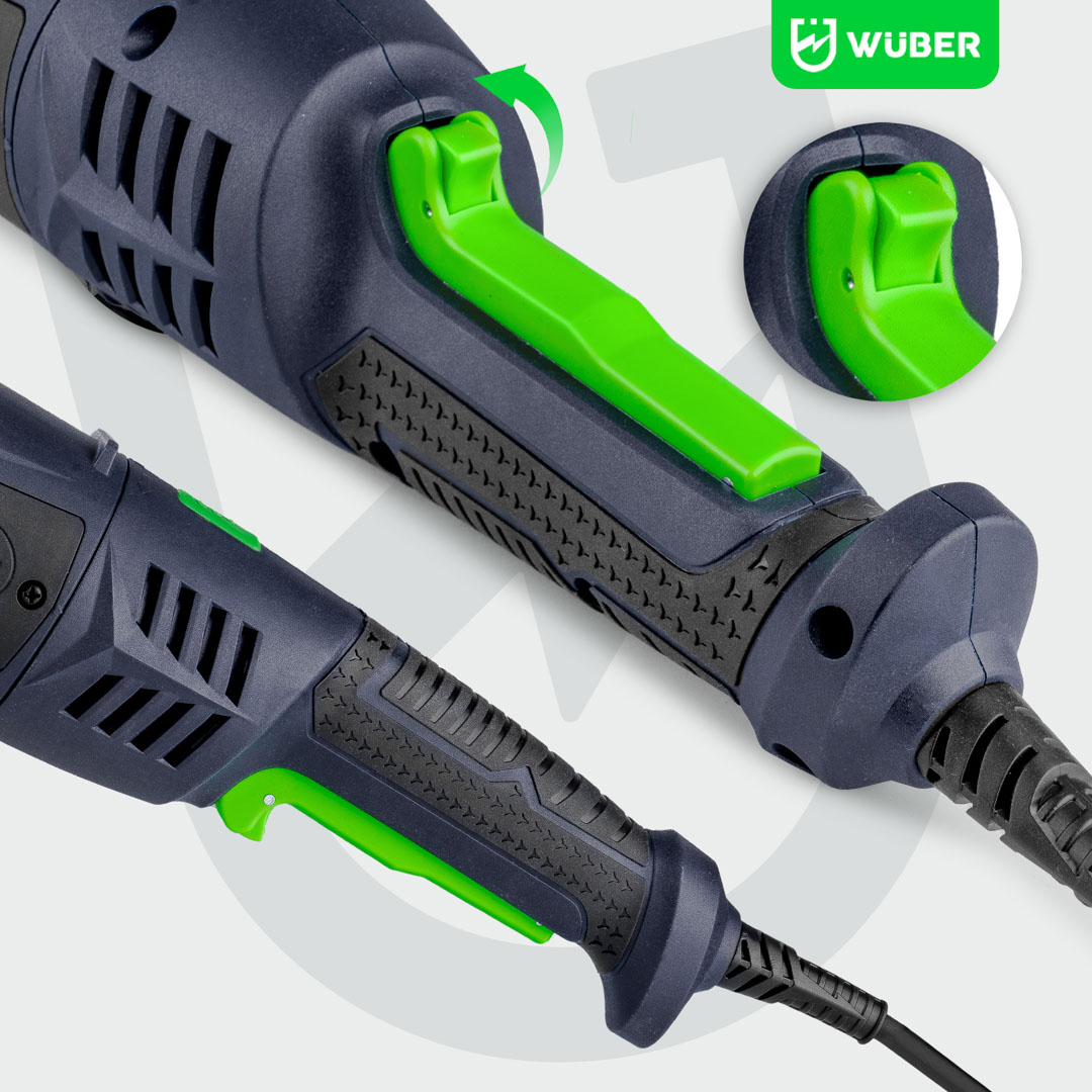 Šlifuoklis aprūpintas galingu 2400 W elektros varikliu, galinčiu sukti diską iki 8500 aps./min.