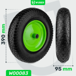 390 mm išorinis skersmuo užtikrina stabilumą ir sklandų judėjimą nelygiais paviršiais, sumažindamas riedėjimo pasipriešinimą.