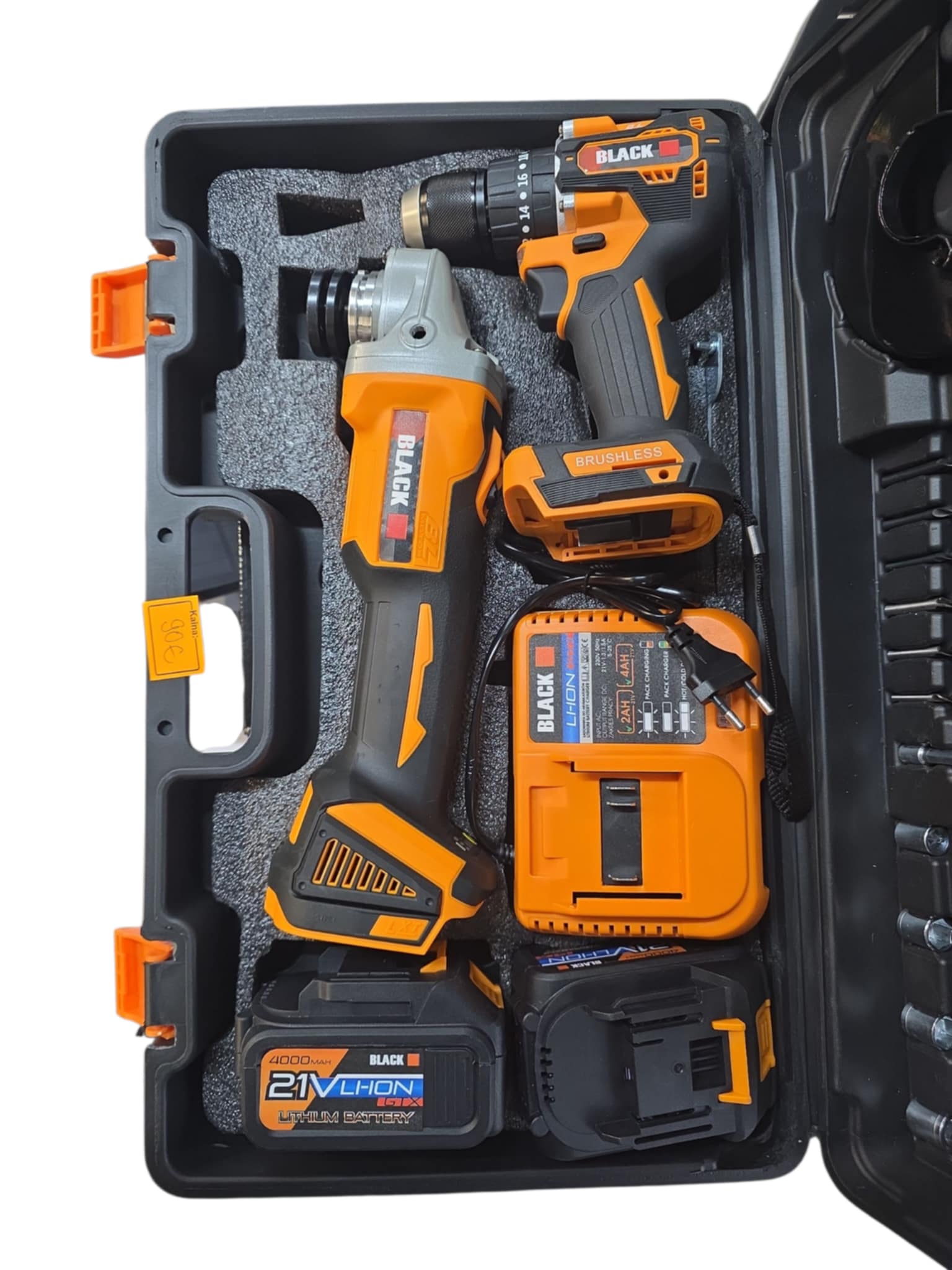 Įrankių rinkinys 2 x 4AH 21V 2in1 akumuliatorinis šlifuoklis gręžtuvas-suktuvas smūginis