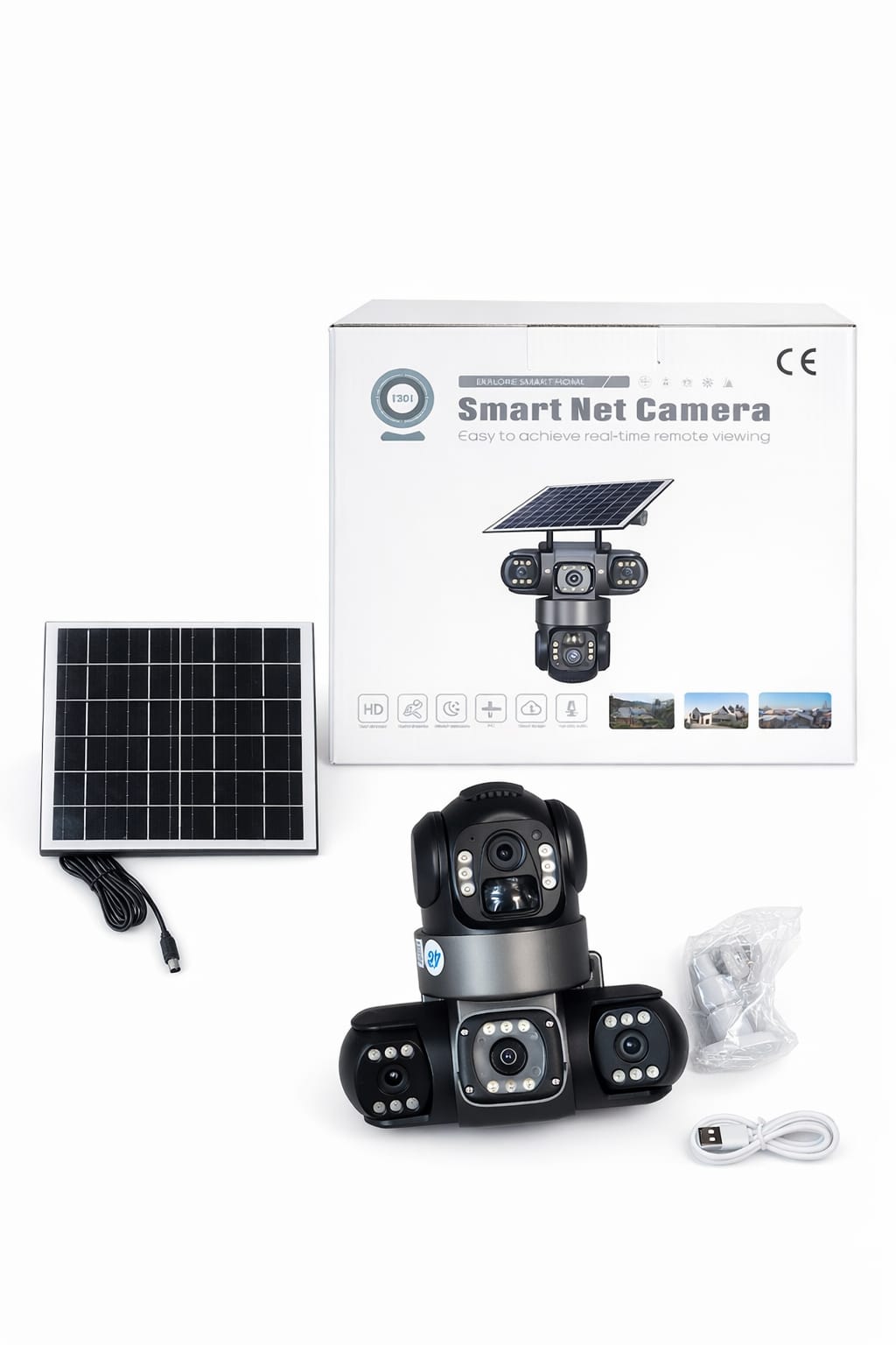 Lauko IP kamera V380 Pro 4G + WiFi su saulės baterija (3 objektyvai)