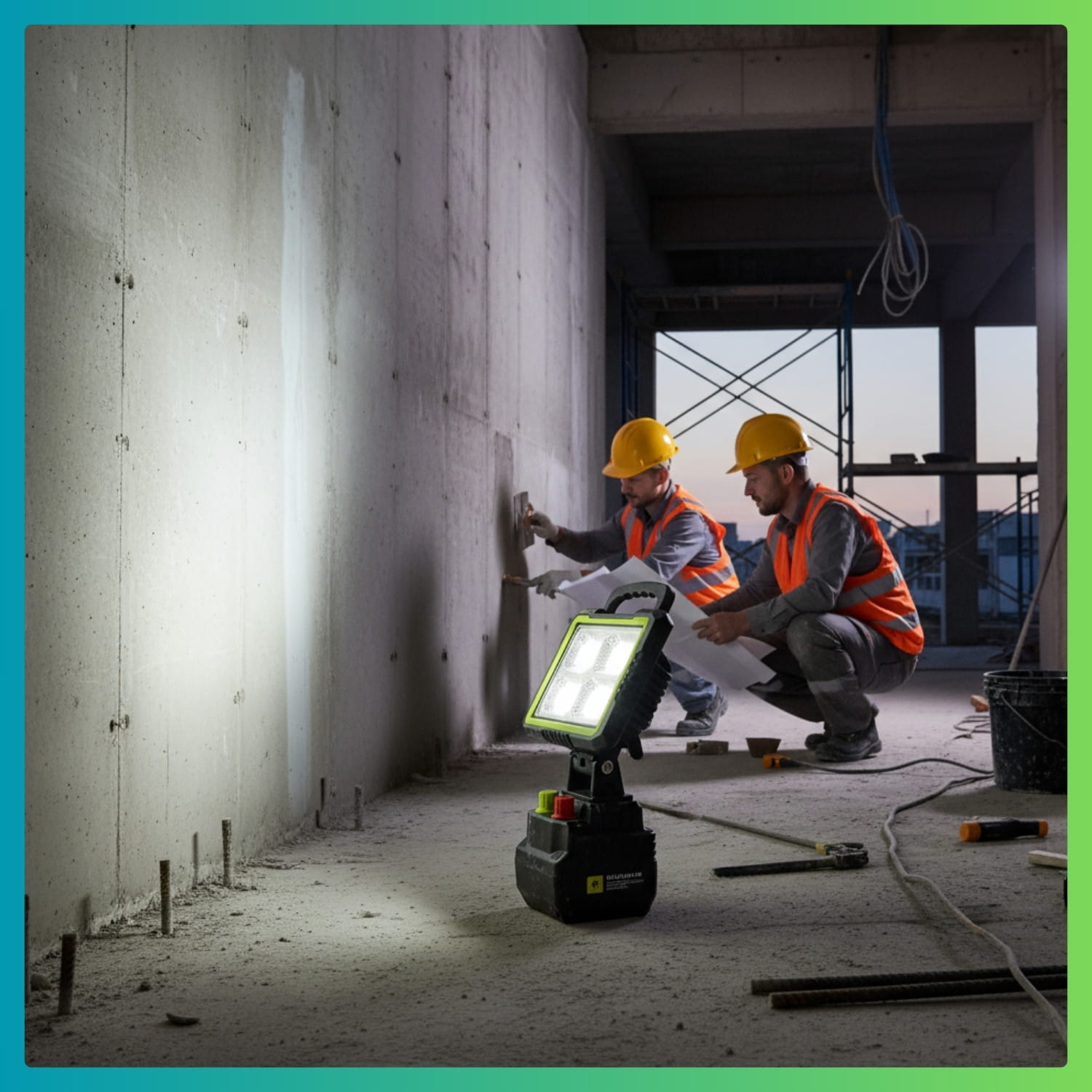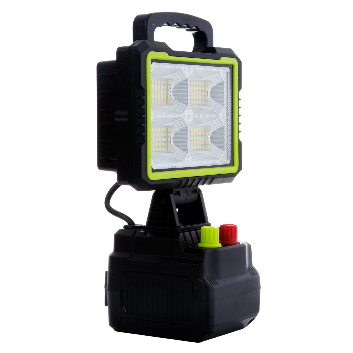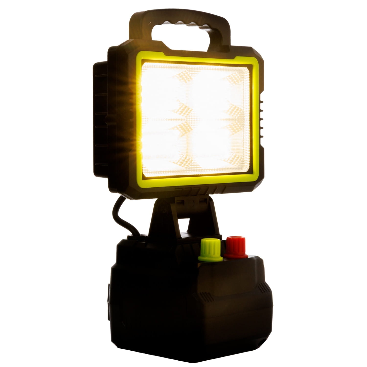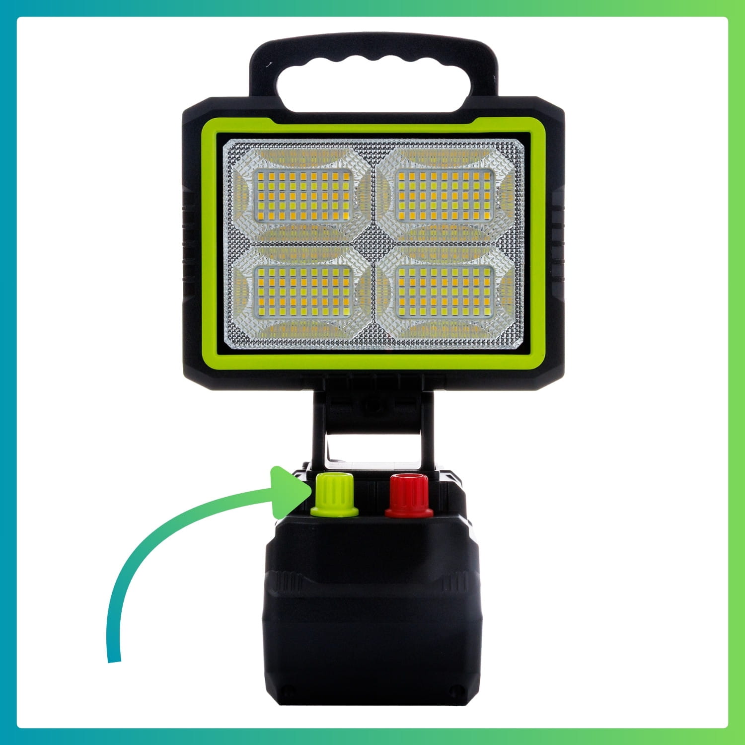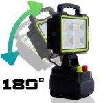 - ŽALIA RANKENĖLĖ (Ryškumas): Sklandžiai reguliuokite šviesos srautą. Nuo švelnaus, bateriją taupančio foninio apšvietimo iki pilnos 150 W galios, kad apšviestumėte visą statybvietę.