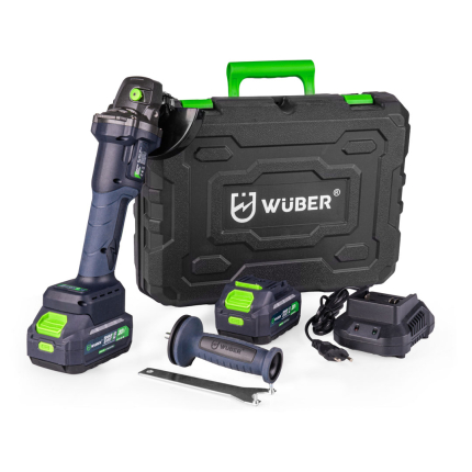 Produkto aprašymas Akumuliatorinis 20 V kampinis šlifuoklis WUBER   Kompaktiškas akumuliatorinis kampinis šlifuoklis yra puikus įrankis tiek namų garažui, tiek