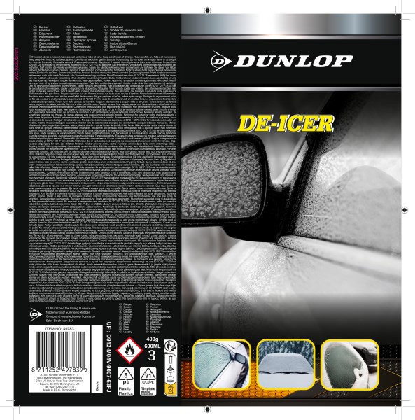 Aprašymas: Ledo tirpiklis Dunlop. Greitai ir lengvai pašalina ledą nuo automobilio stiklų ir veidrodėlių.