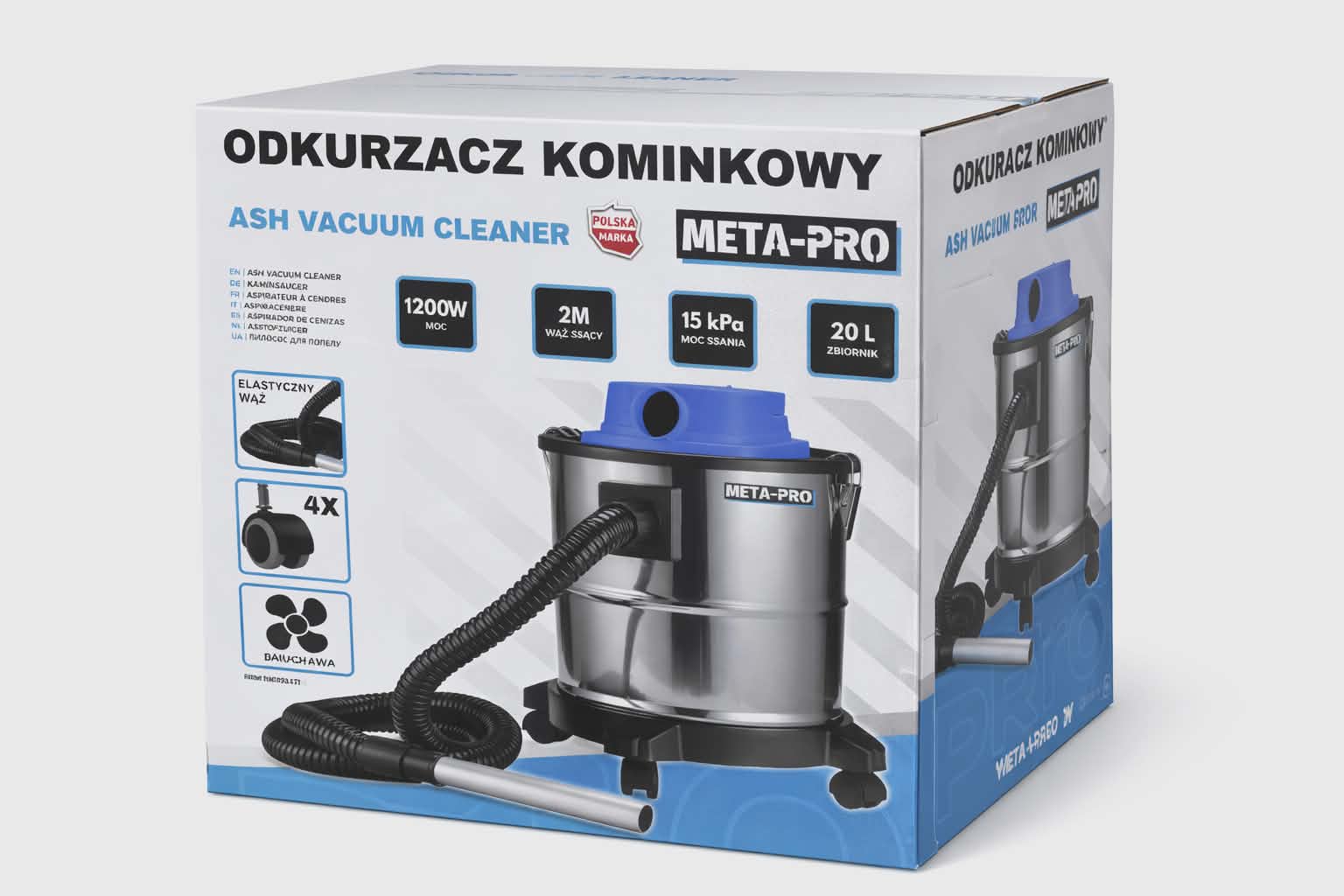 Patikimas ir galingas META-PRO pelenų siurblys, skirtas efektyviam židinių, krosnių, katilų ar grilių valymui.