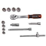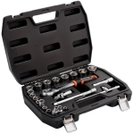 3/8” galvutės: 18 vnt.: 6, 7, 8, 9, 10, 11, 12, 13, 14, 15, 16, 17, 18, 19, 20, 21, 22, 24 mm