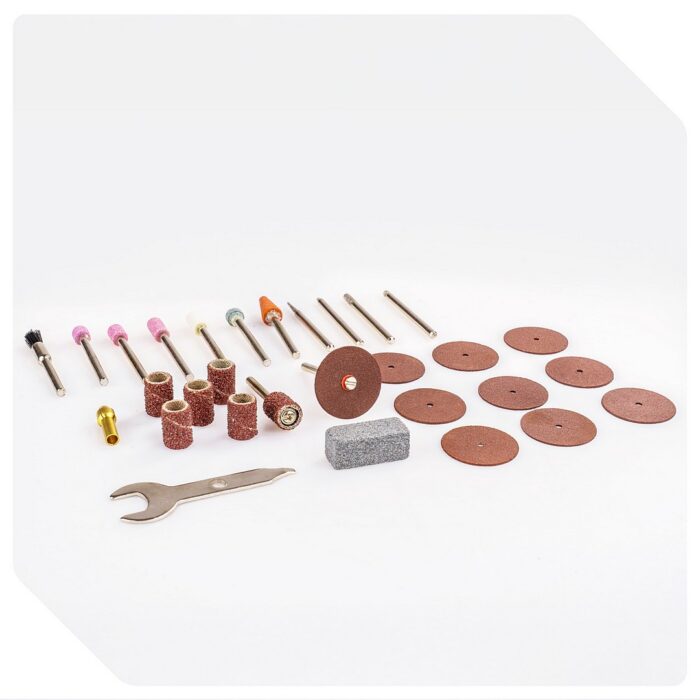 Daugiau nei 30 priedų: diskai, pjaustytuvai, šepečiai, šlifavimo akmenys ir daug daugiau.