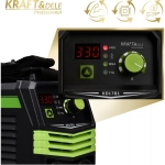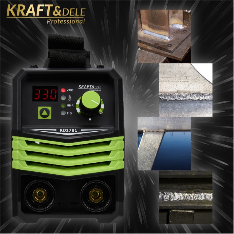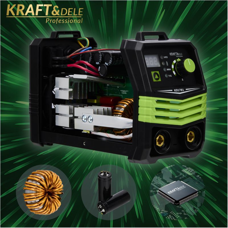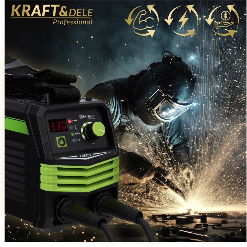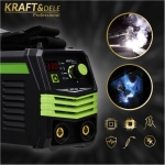 Modernus KRAFT&DELE inverterinis suvirinimo aparatas KD1781 yra kompaktiškas ir efektyvus įrenginys, skirtas rankiniam elektriniam suvirinimui MMA ir TIG LIFT metodais. Jo inverterinė konstrukcija užtikrina stabilų lanko veikimą, aukštą suvirinimo kokybę ir tikslų parametrų valdymą, leidžiantį gauti estetiškus ir patvarius suvirinimo siūles.