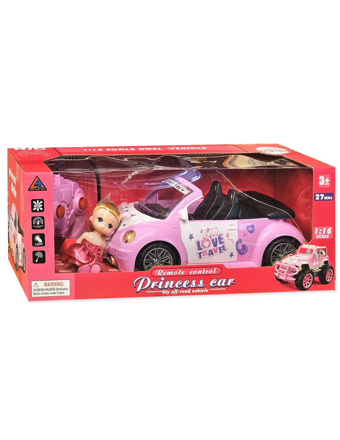 Paruošta nuotykiams! Šis rožinis, nuotoliniu būdu valdomas „Princess Car“ kabrioletas – puikus pasirinkimas mažiesiems automobilių ir lėlių mylėtojams. Mašina gali judėti visomis kryptimis: pirmyn, atgal, į kairę ir į dešinę. Važiuojant salono viduje šviečia lemputė, o rinkinyje esanti lėlė „Princess“ pavers kiekvieną kelionę nuostabia istorija!