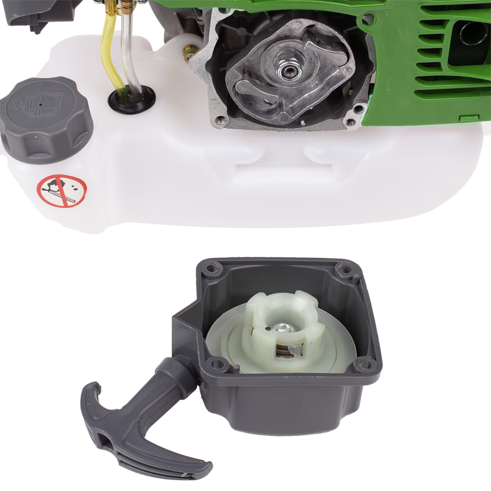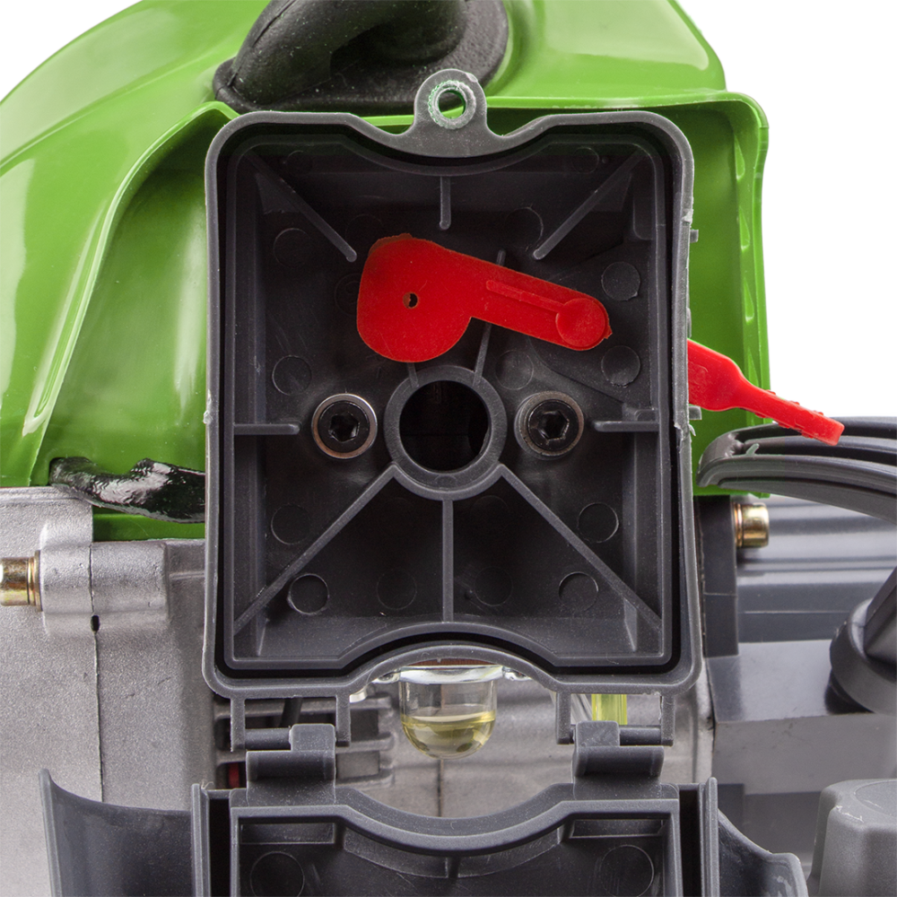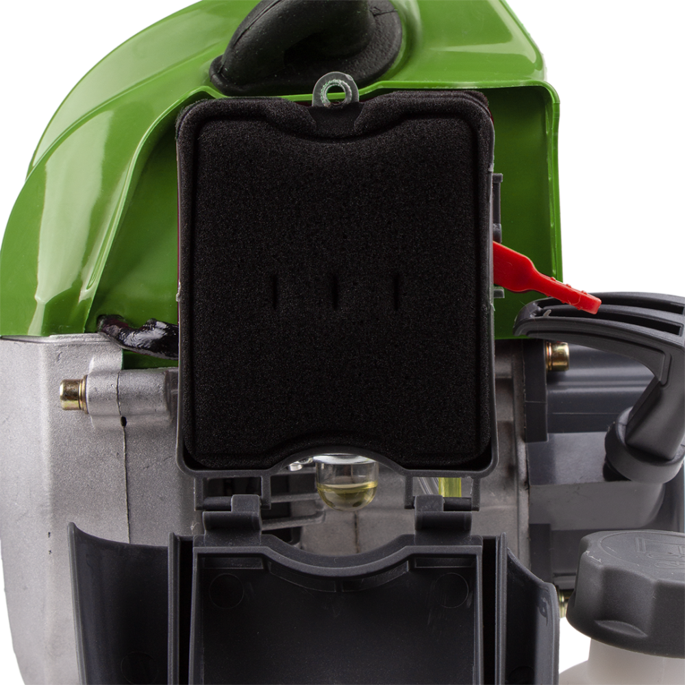 Savybės: 2 taktų oru aušinamas variklis, patobulintas karbiuratorius, sustiprinta pavarų dėžė, pusiau automatinė galvutė su kinišku vamzdžiu, kiniška droselio rankena, standartinis rankenos tvirtinimas prie strypo, EASY START 4 kumšteliai, degalų užpildymo siurblys, metalinė degalų bako apsauga, vibracijos slopinimo sistema – 6 alyva užpildyti, guminiai guoliai strype, supaprastinta apsauginio dangtelio tvirtinimo prie strypo sistema (2 varžtai)