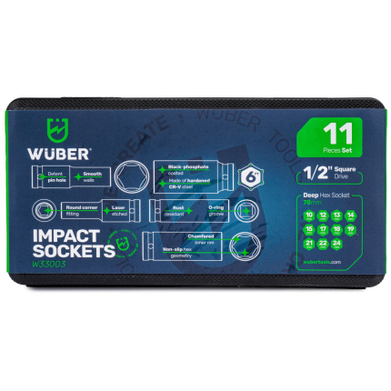 Smūginių galvučių rinkinys, 11 vnt., 1/2 colio, šešiakampis, Wuber