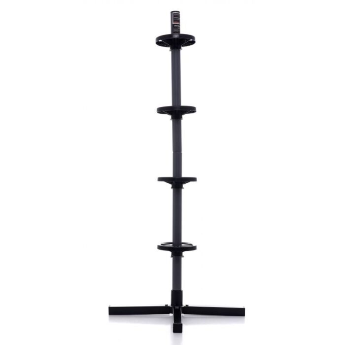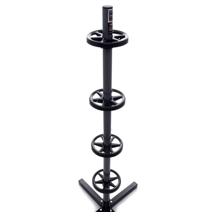 Stovas pagamintas iš patvaraus plastiko, pasižyminčio padidintu atsparumu apkrovai. Stabili konstrukcija leidžia laikyti visą automobilio ratų komplektą be deformacijos ar padangų subliuškimo rizikos. Papildomas privalumas – greitas ir paprastas surinkimas.